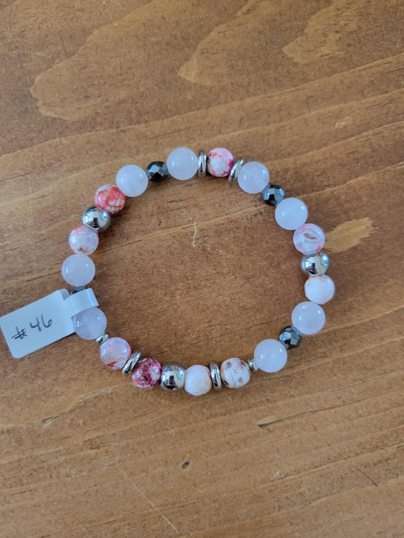 Bracelet en pierre naturelle Agate de feu et quartz rose #46
