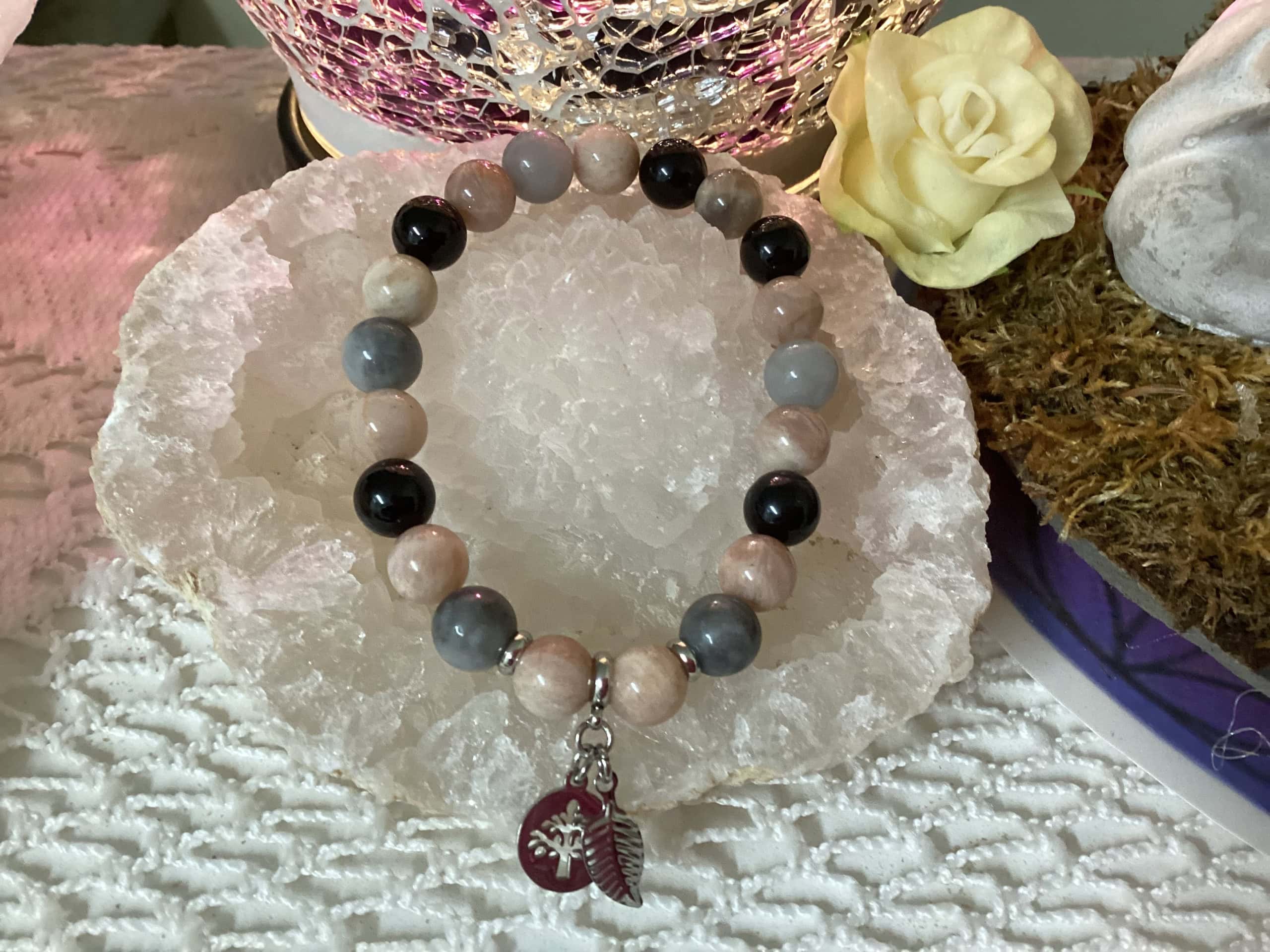 Pierres semi-précieuses en œil de faucon, pierre de soleil et tourmaline noire