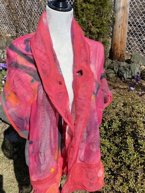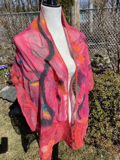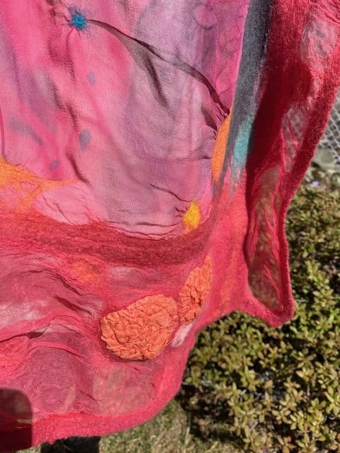 Foulard de soie teint à la main avec une touche de feutre de laine de mérinos