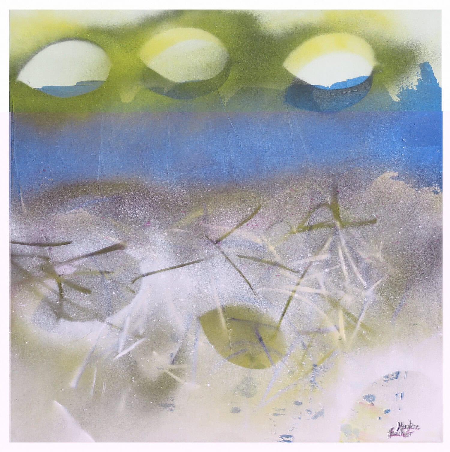 Paysage abstrait et poétique inspiré de la flore canadienne et du rythme des saisons, plus particulièrement le printemps et la fonte des neiges. Elle reflète mon milieu de vie rural et célèbre à la fois la force et la fragilité d’une nature qu’il nous faut préserver. Cette œuvre est la première d’une série de quatre.
