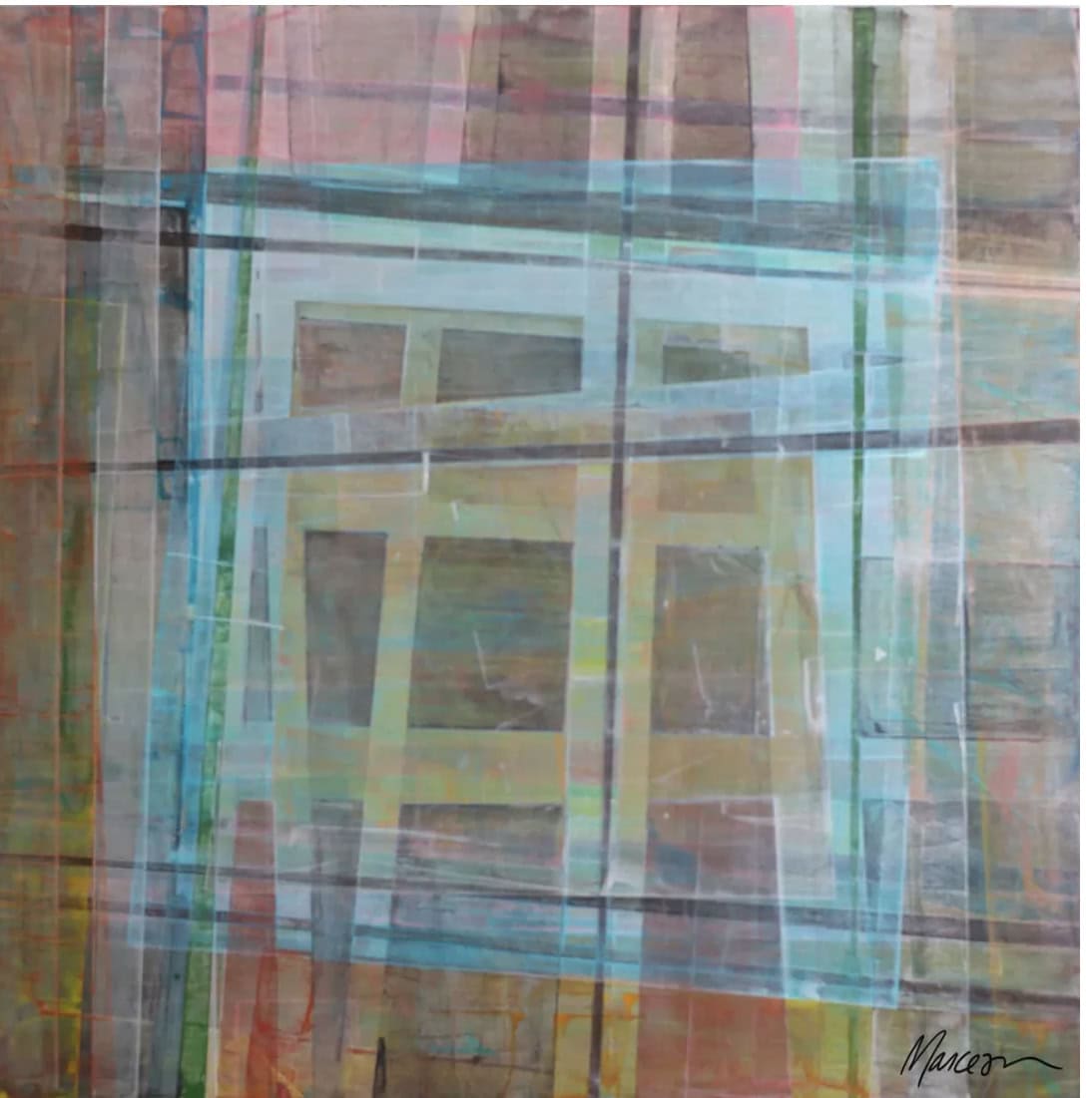 Acrylique sur panneau de bois qui evoque une fenêtre perdue dans le temps. Format 30×30